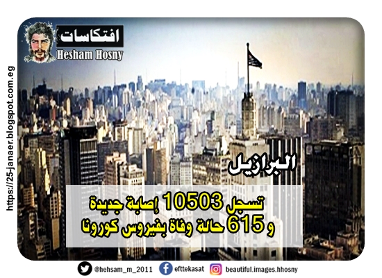 فى يوم واحد فقط تسجل البرازيل 10503 إصابة جديدة و 615 حالة وفاة بفيروس كورونا فى يوم واحد