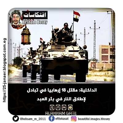 الداخلية: مقتل 18 إرهابيا في تبادل لإطلاق النار في بئر العبد