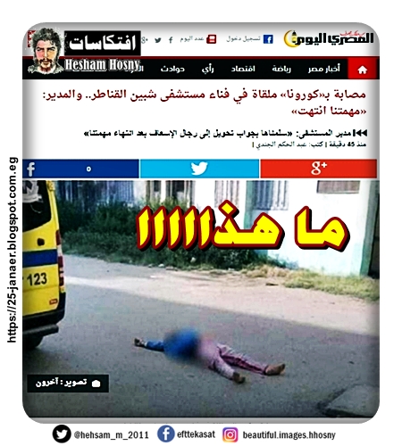 ما هذااااا مصابة بـ«كورونا» ملقاة في فناء مستشفى شبين القناطر والمدير: «مهمتنا انتهت» مدير المستشفى: «سلمناها بجواب تحويل إلى رجال الإسعاف بعد انتهاء مهمتنا»
