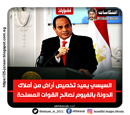 بقرار جمهوري السيسى يعيد تخصيص أراض من املاك الدولة بالفيوم لصالح القوات المسلحة