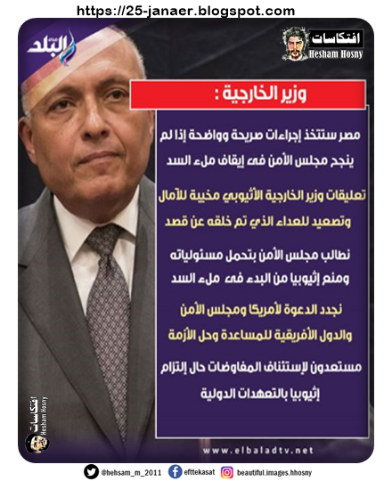 وزير الخارجية : مصر ستتخذ إجراءات صريحة وواضحة إذا لم ينجح مجلس الأمن فى إيقاف ملء السد
