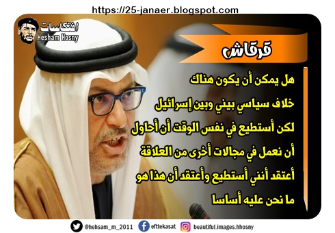 قرقاش هل يمكن أن يكون هناك خلاف سياسي بيني وبين إسرائيل لكن أستطيع في نفس الوقت أن أحاول أن نعمل في مجالات أخرى من العلاقة أعتقد أنني أستطيع وأعتقد أن هذا هو ما نحن عليه أساسا