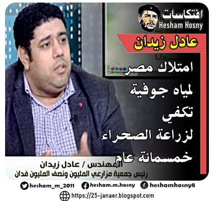عادل زيدان رئيس جمعية "مزارعي 1.5 مليون فدان" امتلاك مصر لمياه جوفية تكفي لزراعة الصحراء خمسمائة عام
