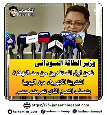 وزير الطاقة السودانى نحن اول المستفدين من سد النهضة اشترينا الكهرباء من اثيوبيا بنصف الثمن الذى تعرضه مصر