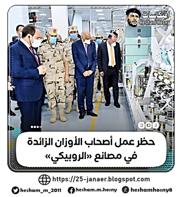 تنفيذا لتعليمات السيسي.. مدير الشركة الوطنية للتطوير والتنمية الصناعية يعلن إضافة شروط جديدة لاختيار العمال بمدينة «الروبيكي» الصناعية للغزل والنسيج والصناعة الجلدية، منها عدم قبول أصحاب الأوزان الزائدة