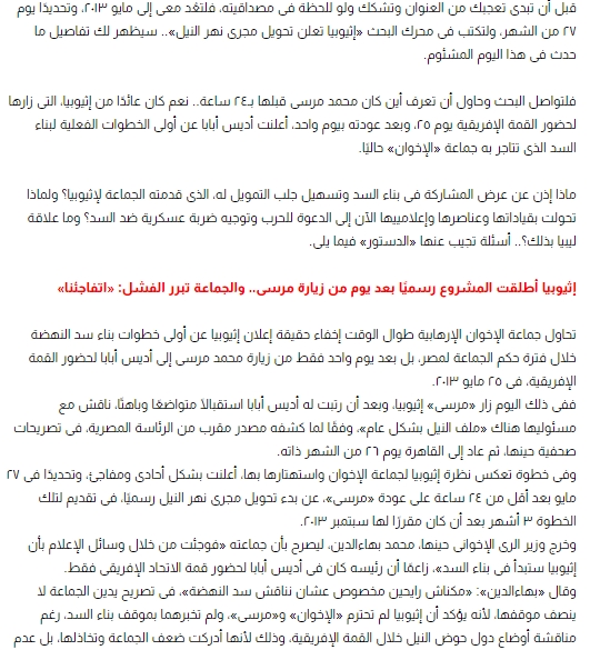 جريدة الدستور بقيادة محمد الباز سارة الشلقانى تكتب -=- كيف تورطت «الإخوان» فى بناء سد النهضة وخططت لتسهيل تمويله والشراكة فيه؟