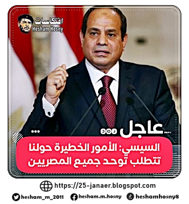 السيسي ما يدور حولنا من أمور شديدة الخطورة والحساسية يتطلب أن يكون المصريون على قلب رجل واحد