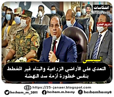 السيسي التعدي على الأراضي الزراعية والبناء غير المخطط بنفس خطورة أزمة سد النهضة