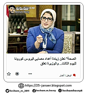 وزيرة الصحة والسكان، عن ارتفاع عدد الإصابات مرة أخرى، وقالت إن زيادات التجمعات خلال عيد الأضحى كان سببا في ذلك وشددت على ضرورة الالتزام بالإجراءات الوقائية والاحترازية واتباع إجراءات التباعد الاجتماعي تحسبًا لزيادة أعداد إصابات فيروس كورونا المستجد (كوفيد – 19).