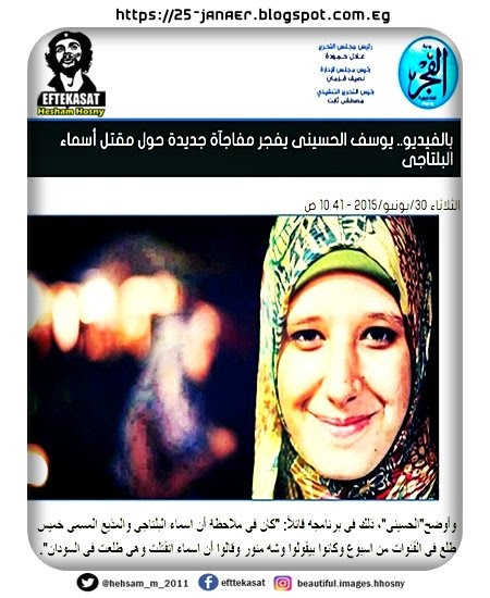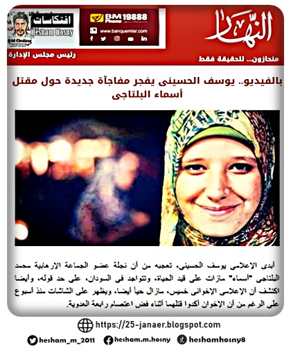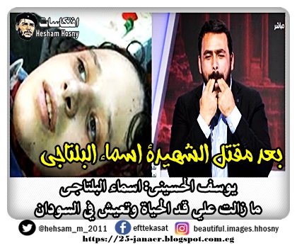 بعد مقتل الشهيدة اسماء البلتاجى يوسف الحسينى: اسماء البلتاجى ما زالت علي قد الحياة وتعيش في السودان