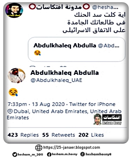 مستشار ابن زايد وهو بيعلق على التطبيع الرسمى نظمى فهمى بين الامارات و اسرائيل -=- ما جبش ميا من اى حتة ولا حتى حرف