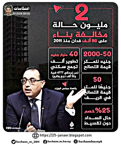 2 مليون بناء مخالف خلال نحو 10 سنوات وخصم 25% للسداد الفوري لقيمة التصالح