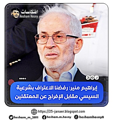 نائب المرشد العام للإخوان المسلمين إبراهيم منير: «النظام تواصل معنا منذ 3 أو 4 سنوات للاعتراف بشرعية #السيسي ونظامه مقابل الإفراج عن المعتقلين، ورفضنا ذلك واعتبرناه خيانة للأمة»