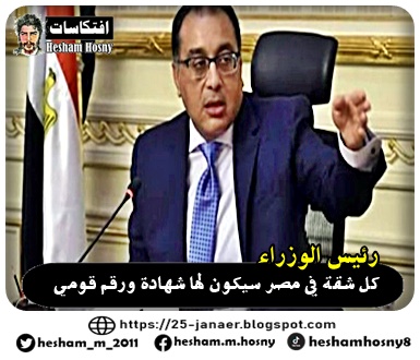 رئيس الوزراء كل شقة في مصر سيكون لها شهادة ورقم قومي