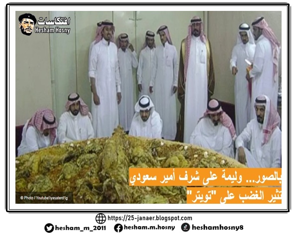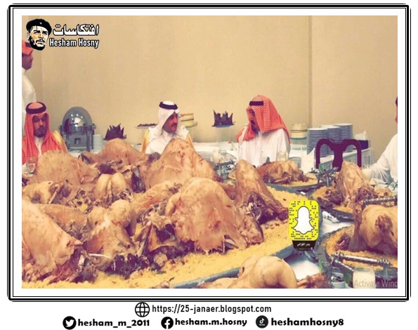 حيث أظهرت الصورالبذخ الكبير في الوليمة الأمر الذي دفع الكثيرين على التعليق على هذه الدعوة. فقد ظهر في الصور صحن عملاق وقد وضع عليه الكثير من اللحوم و أطعمة أخرى.