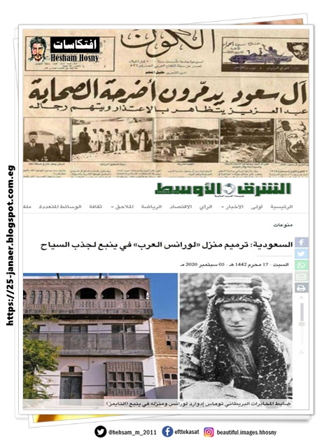 كشفت صحيفة «تلغراف» البريطانية أن المملكة العربية السعودية بصدد ترميم منزل ضابط المخابرات البريطاني توماس إدوارد لورانس، المعروف باسم «لورانس العرب» الذي أقام به عشية حملته الشهيرة في الصحراء، ليتم استعادة المنطقة كنقطة جذب سياحي.