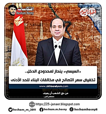 جريدة الاخبار « السيسي» ينحاز لمحدودي الدخل.. تخفيض سعر التصالح في #مخالفات_البناء للحد الأدنى