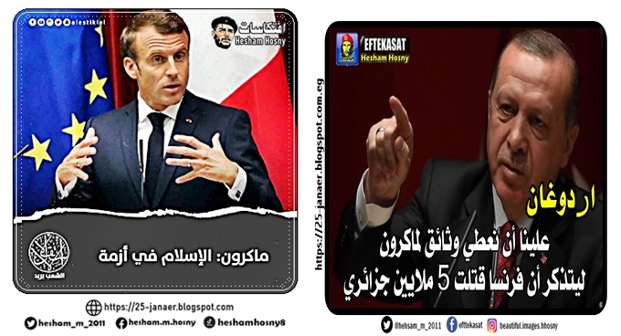ماكرون الاسلام فى ازمة -=- لكن -=- أردوغان: علينا أن نعطي وثائق لماكرون ليتذكر أن فرنسا قتلت 5 ملايين جزائري