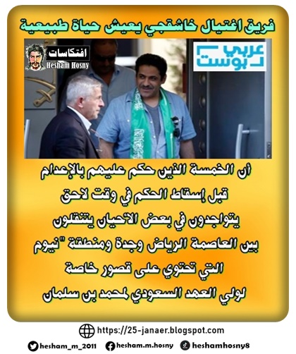 حياة طبيعية لفريق اغتيال خاشقجي: لكنّ مصادر خاصة لـ"عربي بوست" قالت إنّ الأسماء التي حكم عليها بالإعدام في وقت سابق قبل إسقاطه عنهم، ويتعلق الأمر بكل من ماهر عبدالعزيز المطرب، وصلاح محمد الطبيقي، ومشعل سعد البستاني، ومحمد سعد الزهراني، ومنصور عثمان أبا حسين، يعيشون حياتهم بشكل طبيعي.