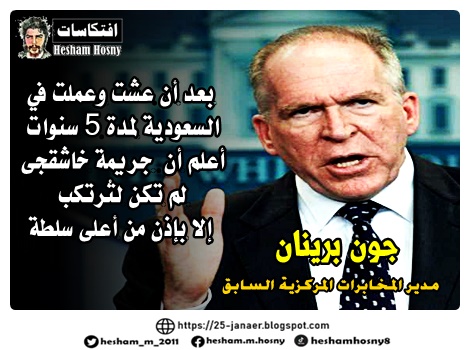 مدير المخابرات المركزية السابق اثناء مقتل جمال خاشقجى جون برينان بعد أن عشت وعملت في السعودية لمدة ٥ سنوات أعلم أن جريمة خاشقجى لم تكن لتُرتكب إلا بإذن من أعلى سلطة
