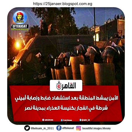 عاااجل الأمن يمشط المنطقة بعد استشهاد ضابط وإصابة أميني شرطة في انفجار بكنيسة العذراء بمدينة نصر