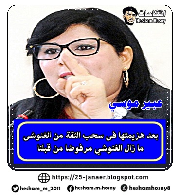 كما أبرزت الصحيفة تصريحات عبير موسى رئيسة الحزب الدستوري الحر الذي حرك لائحة سحب الثقة من الغنوشي في البرلمان، إن الغنوشي "سقط سياسياً وإن حركة النهضة كقوة مستقلة بذاتها انتهت".