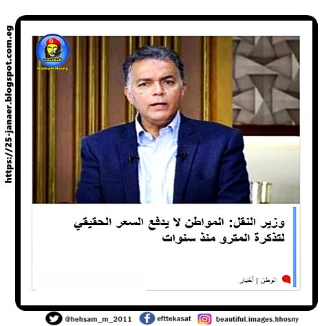 رغم رفع أسعار التذاكر أكثر من مرة.. وزير النقل الفريق كامل، يقول إن خسائر المترو اليومية أكثر من 50%، مضيفا: «مش هنرفع سعر التذكرة إلا بعد موافقة السيسي»