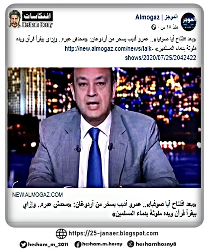 عمرو أديب يسخر من أردوغان «بعد افتتاح آيا صوفيا» محدش عبره وإزاي بيقرأ قرآن ويده ملوثة بدماء المسلمين