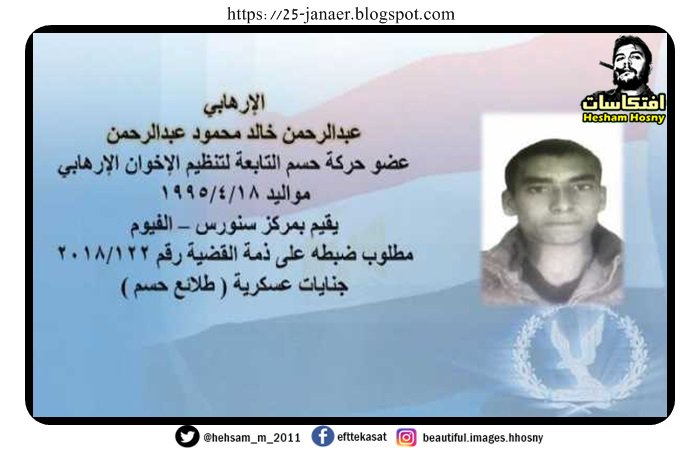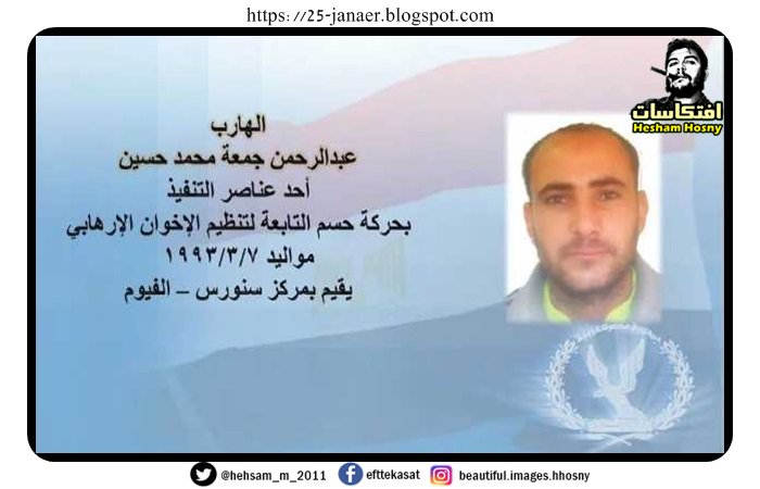 أعلنت أجهزة الأمن بوزارة الداخلية، هوية الإرهابي عبد الرحمن خالد محمود عبد الرحمن، منفذ حادث الانفجار أمام معهد الأورام.