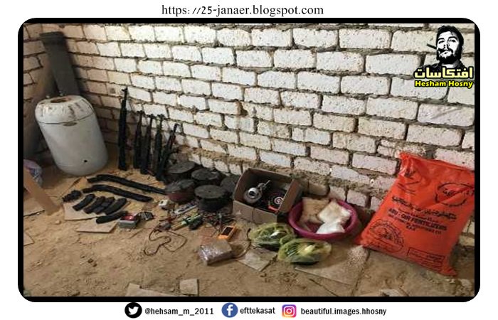 وعثر بحوزة العناصر على 4 أسلحة نارية وخرطوش، كما عثر على معمل لتصنيع العبوات الناسفة والقنابل بداخله مواد التصنيع، وتم اتخاذ الإجراءات اللازمة وإخطار نيابة أمن الدولة العليا.