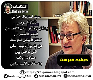 ويوضح هيرست في مقال له على موقع "ميدل إيست آي" (Middle East Eye) أنه سيتم استبدال جزئي لقناة السويس -وهي مصدر مالي مهم لمصر- ببدائل أرخص لنقل النفط من البحر الأحمر إلى البحر الأبيض المتوسط، عن طريق أنابيب النقل التي توصل بين ميناءي إيلات وعسقلان الإسرائيليين.