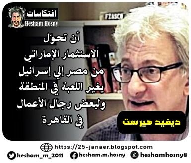 ويشير هيرست إلى أن تحوّل الاستثمار الإماراتي من مصر إلى إسرائيل يغير اللعبة في المنطقة ولبعض رجال الأعمال في القاهرة.