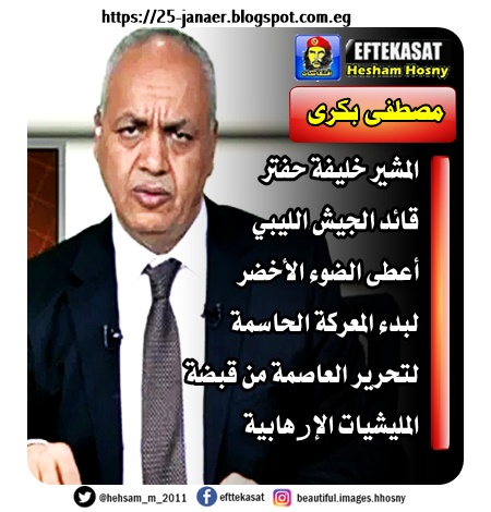 مصطفى بكرى المشير خليفة حفتر قائد الجيش الليبي أعطى الضوء الأخضر لبدء المعركة الحاسمة لتحرير العاصمة من قبضة المليشيات الإرهابية