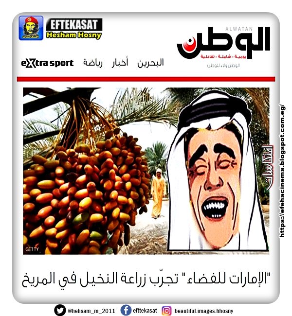 "الإمارات للفضاء" تجرّب زراعة النخيل في المريخ -- إرسال نوى من شجرة النخيل إلى محطة الفضاء الدولية، خلال الأيام القليلة المقبلة، لدراسة مدى تأثرها ببيئة الفضاء وبحث إمكان زراعتها في كوكب المريخ مستقبلاً في تجربة علمية بحثية هي الأولى من نوعها في العالم.